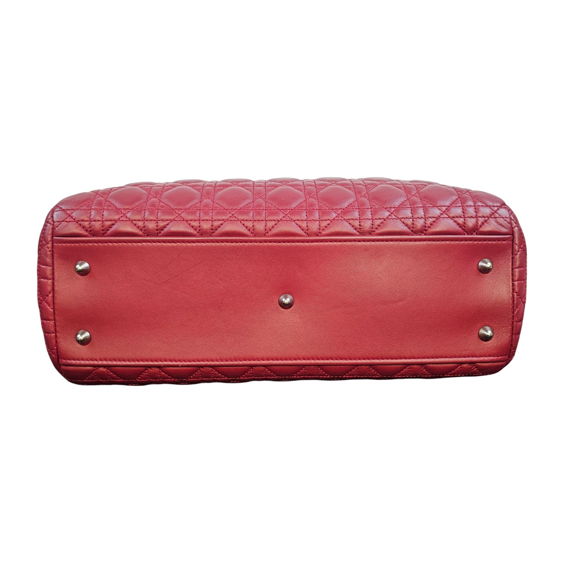 Christian Dior Lady Dior Large Cannage Quilted Lambskin Leather Tote Bag - Red features luxurious red quilted lambskin leather with the signature Cannage pattern and silver chain handles. This elegant tote combines classic Dior craftsmanship with a spacious design, perfect for carrying essentials in style. Ideal as a high-end fashion accessory, it embodies timeless luxury and refined sophistication.