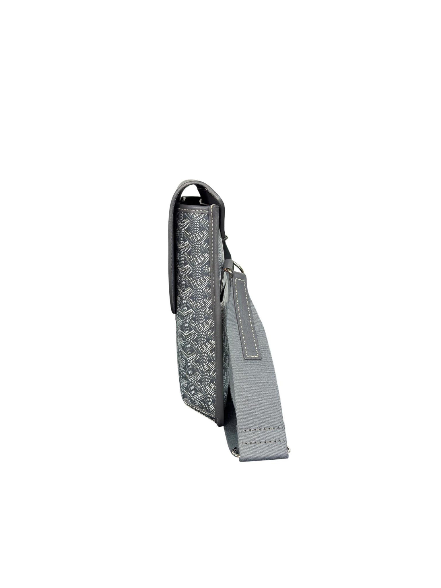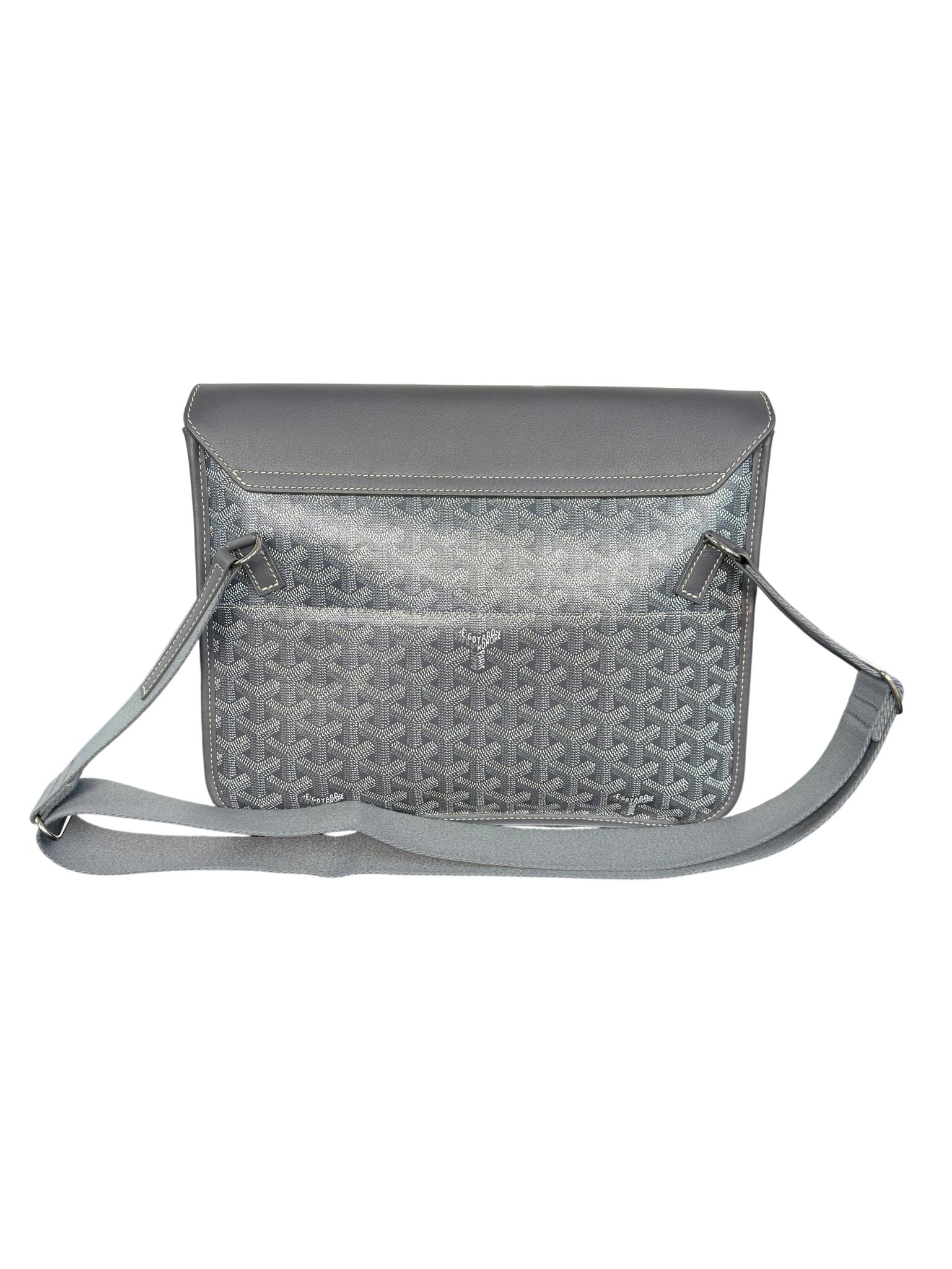 Goyard Goyardine Coursier Messenger Bag Grey Canvas is a stylish and durable crossbody bag made from signature Goyardine coated canvas in grey, featuring white stitching and leather straps. This pre-owned messenger bag combines luxury and functionality, perfect for everyday use or travel. Its sleek design and monogram pattern make it a sought-after fashion accessory for both men and women.