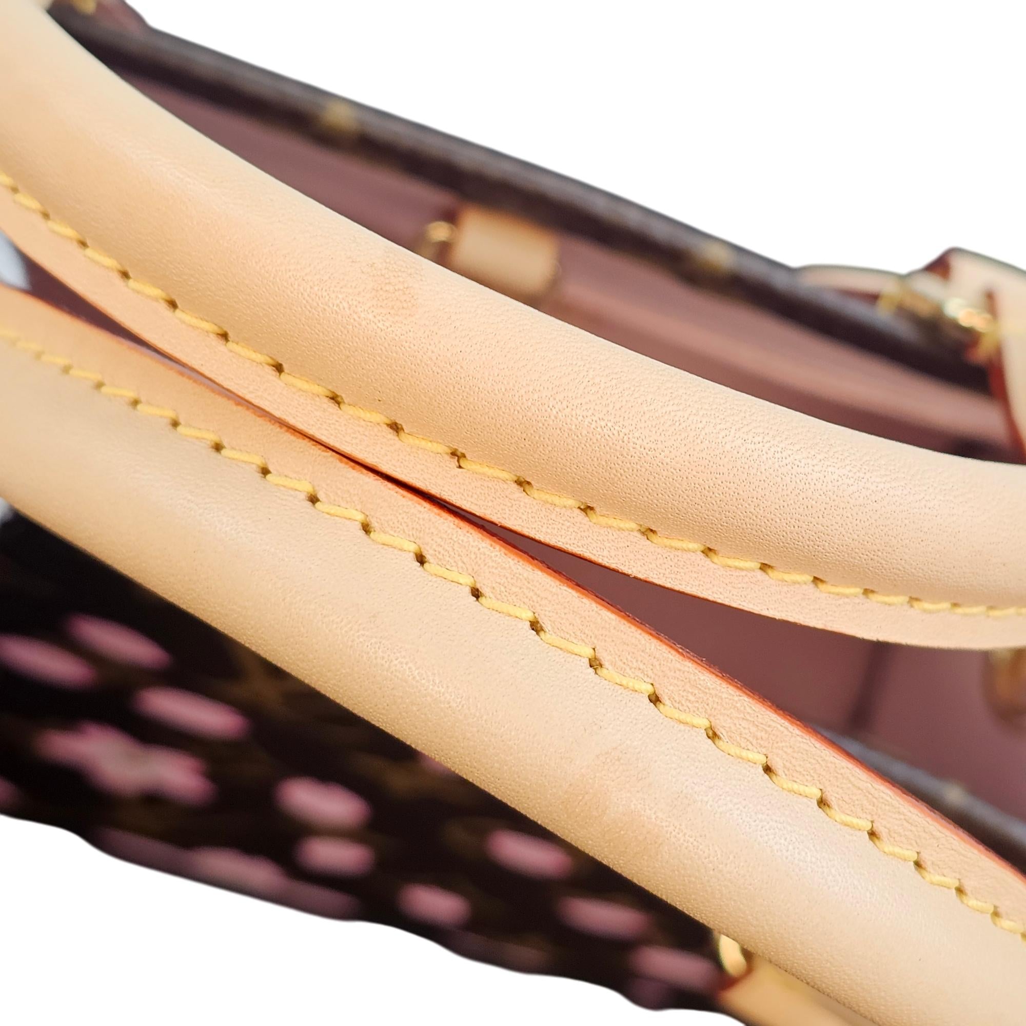 Louis Vuitton x Takashi Murakami OnTheGo PM Cherry Blossom Monogram Canvas Handbag is a luxurious shoulder tote featuring the iconic Louis Vuitton monogram canvas adorned with pink cherry blossom flower motifs by Takashi Murakami. This fashion accessory combines a brown leather base with vibrant pink floral designs, making it a stylish and collectible piece for handbag enthusiasts. Perfect for everyday use or special occasions, it offers a blend of high-end craftsmanship and artistic flair.
