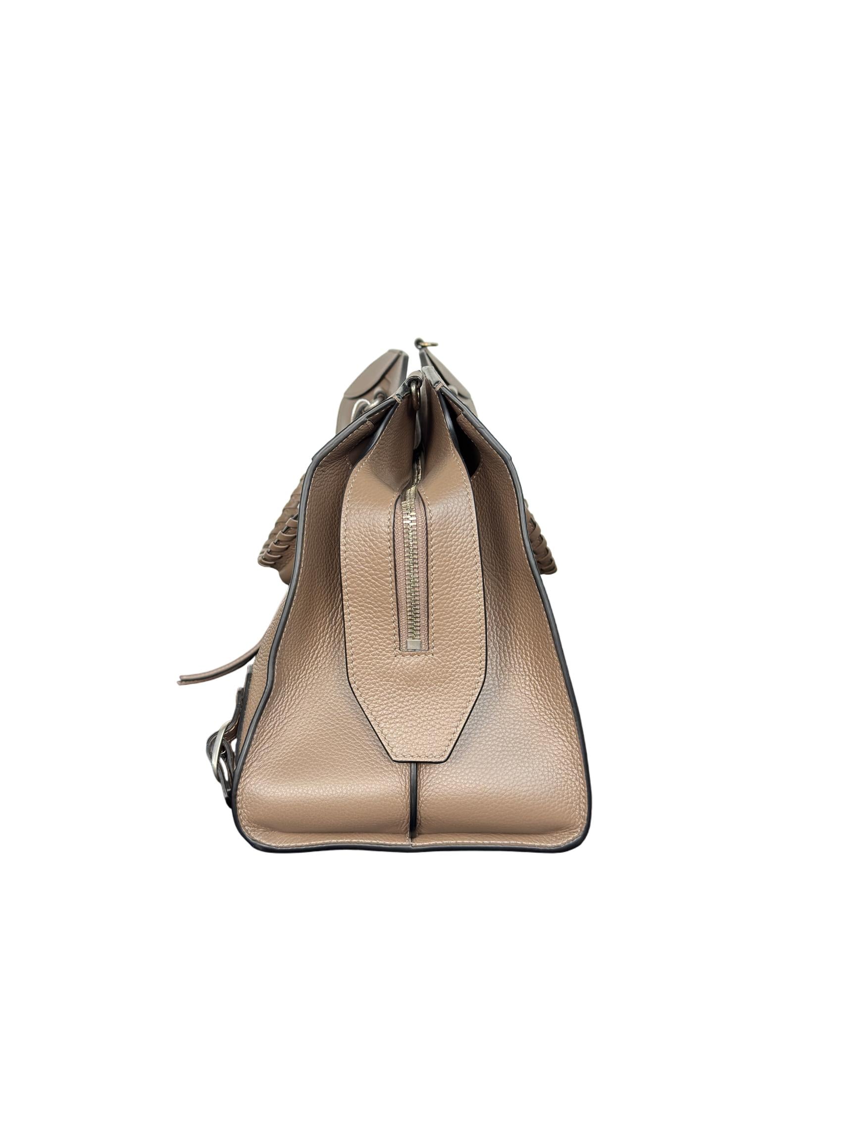 Elevate your style with the Balenciaga Neo Classic City S, crafted from luxurious grained brown leather. This iconic top handle bag features distinctive silver hardware, a zippered front pocket, and a removable shoulder strap for versatile wear. Its modern silhouette and premium craftsmanship make it a must-have for fashion-forward individuals.