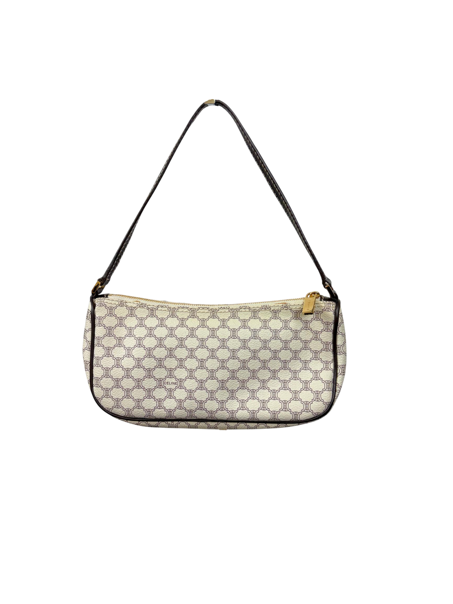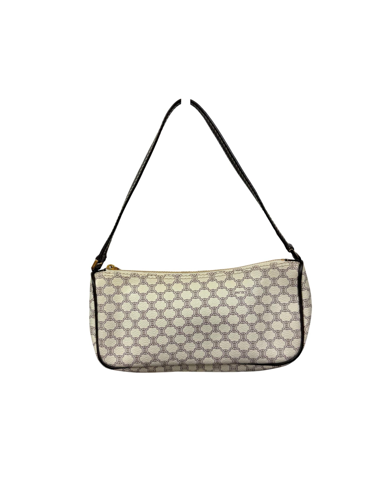 CELINE Macadam AVA Shoulder Bag - White & Brown Vintage is a rare second-hand luxury purse featuring the iconic Macadam pattern in white and brown. This vintage shoulder bag offers timeless style with high-quality materials, perfect for fashion accessory collectors and everyday elegance.
