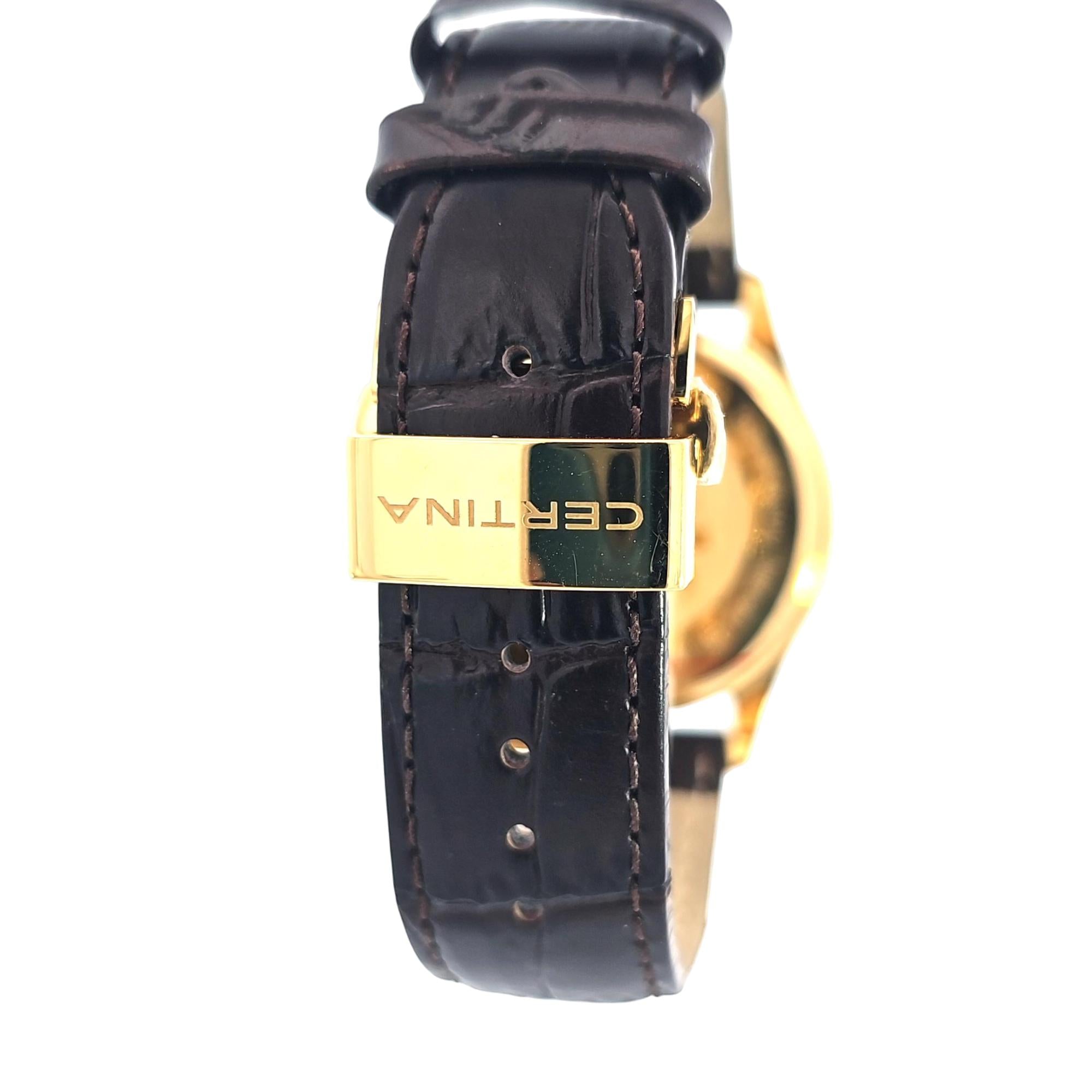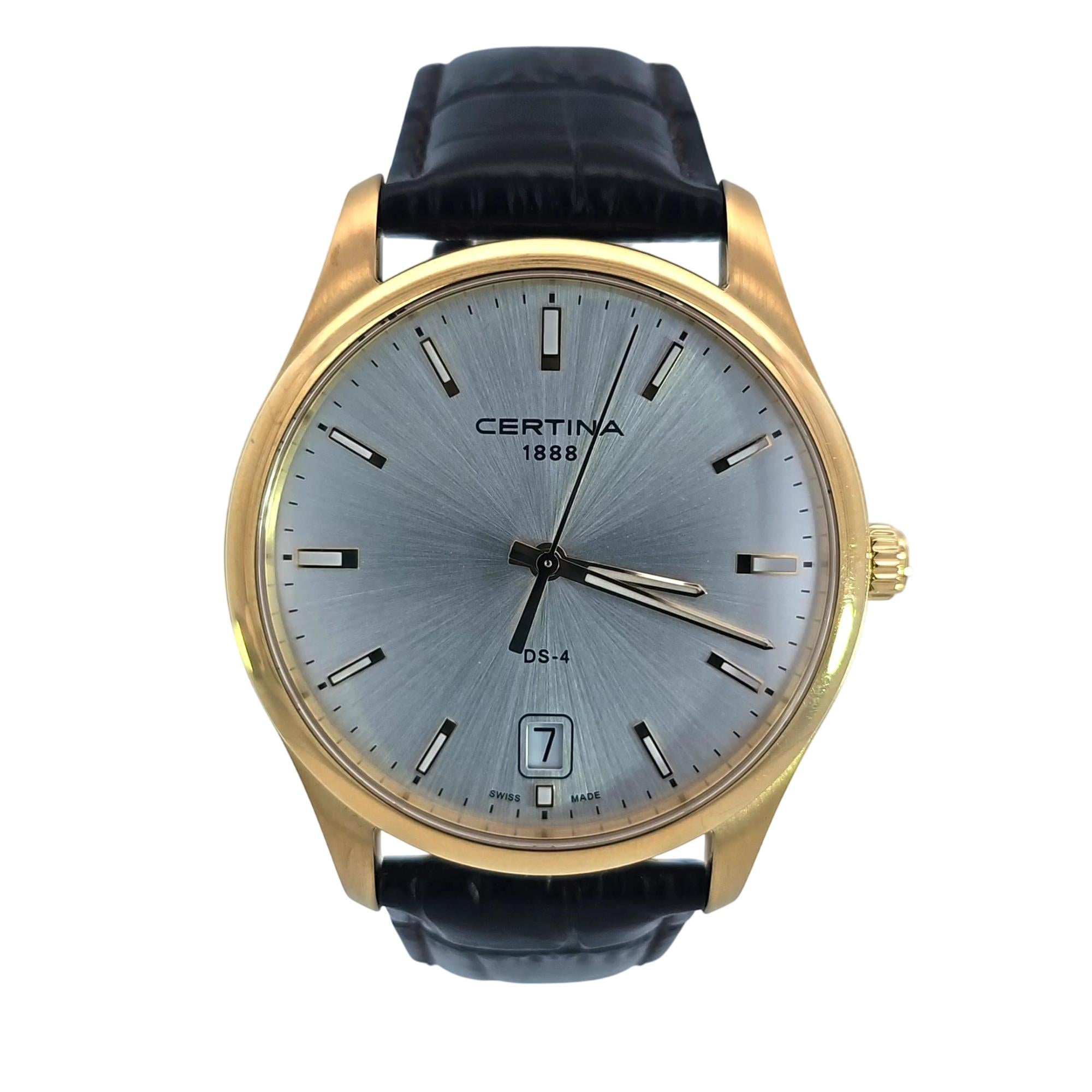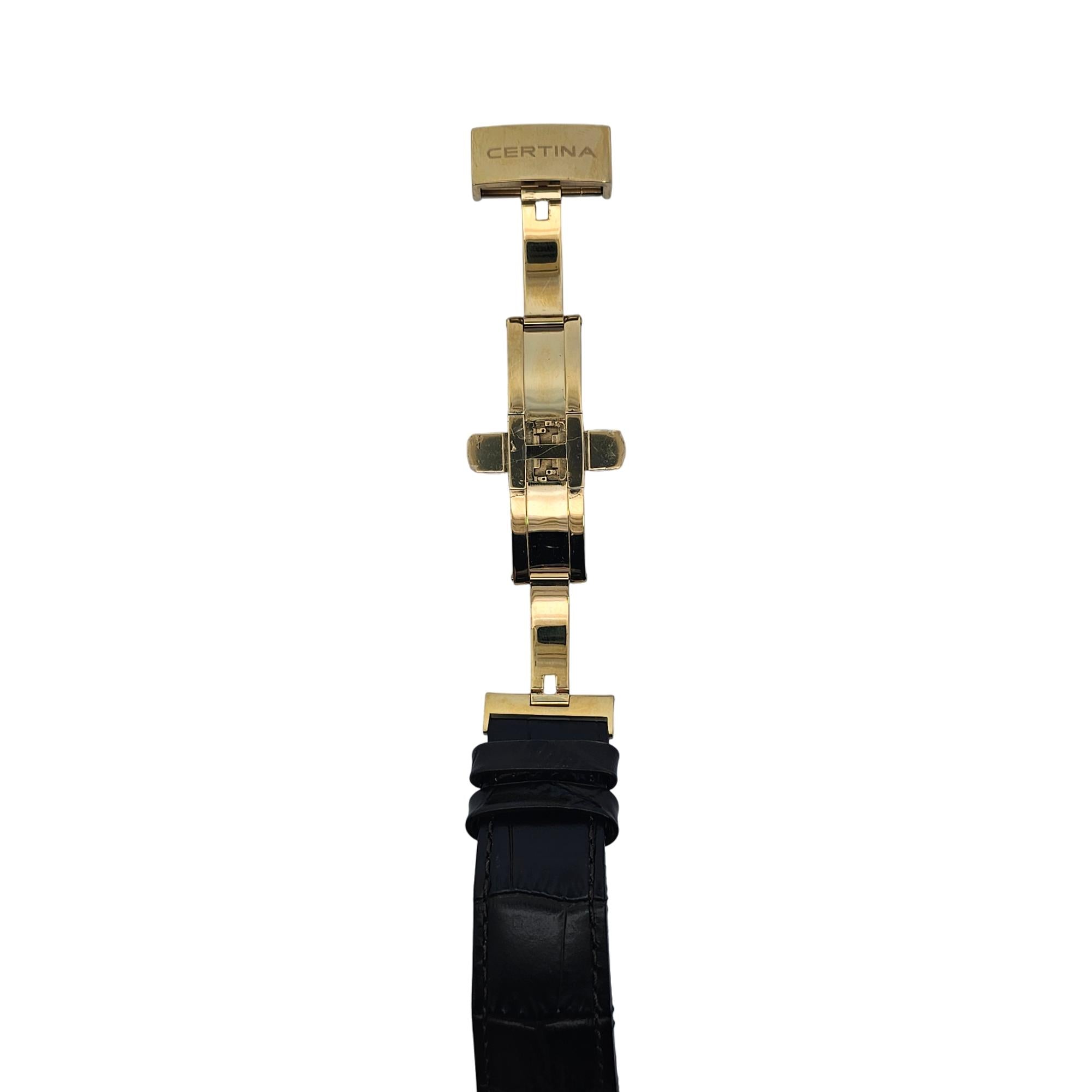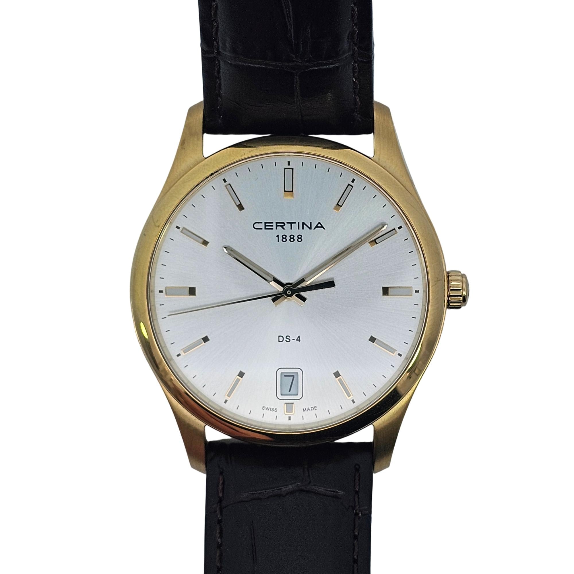 Certina DS-4 1888 Quartz Men's Watch (Model C0226101603101) Gold Case, Leather Strap features a Swiss-made precision quartz movement housed in a sleek gold case with a sophisticated brown leather strap. This elegant 40mm analog watch combines classic design with durable materials, perfect for everyday wear and fashion-conscious individuals seeking a reliable accessory.