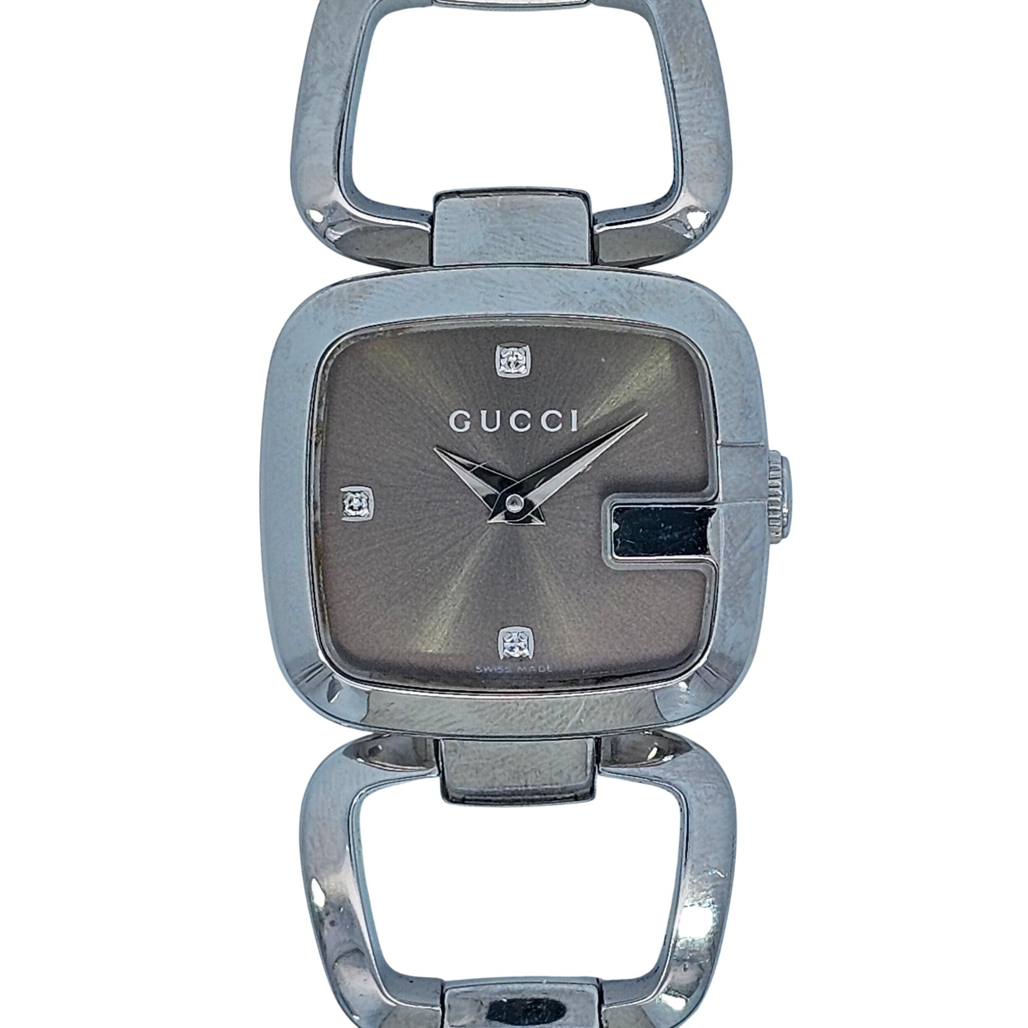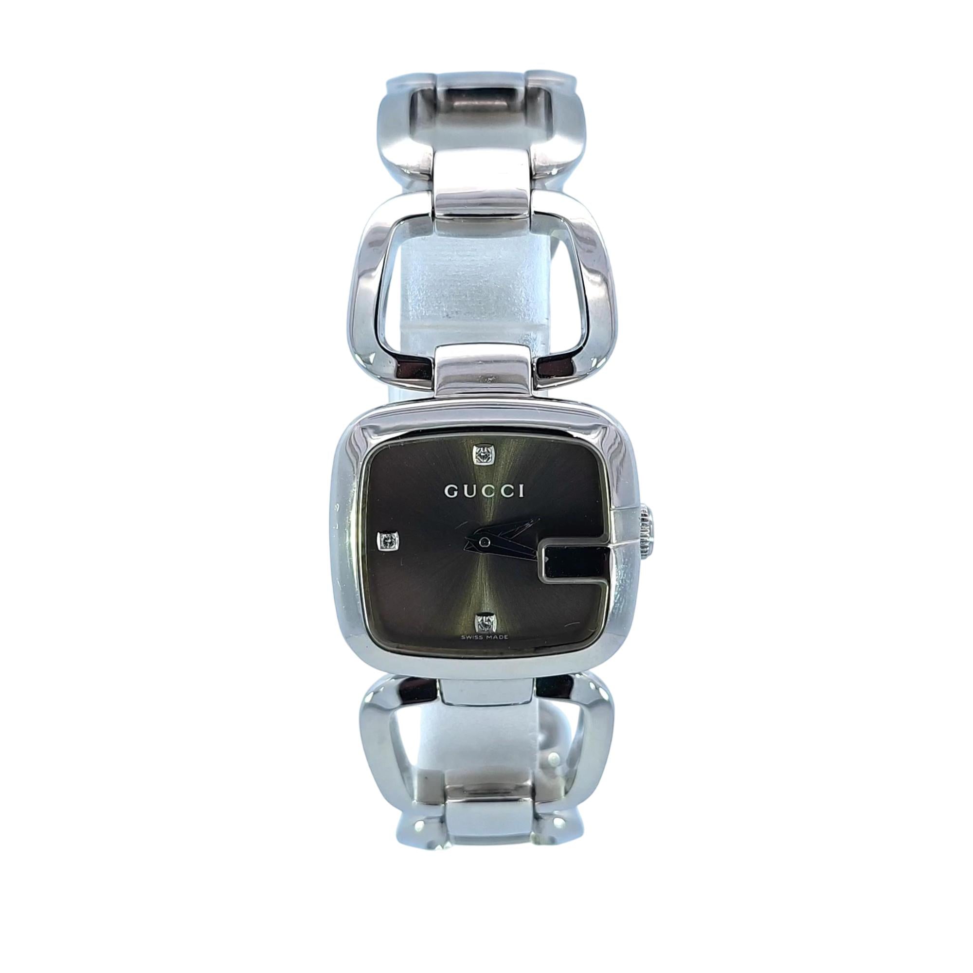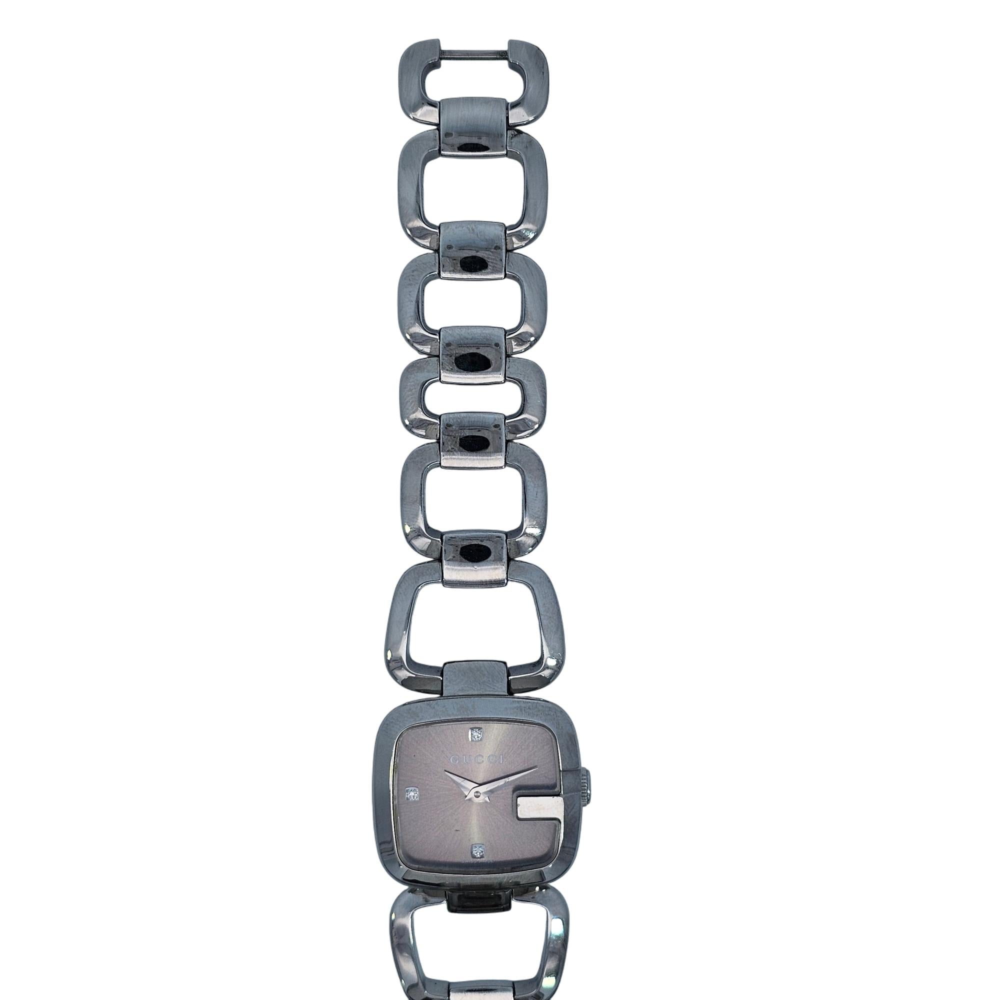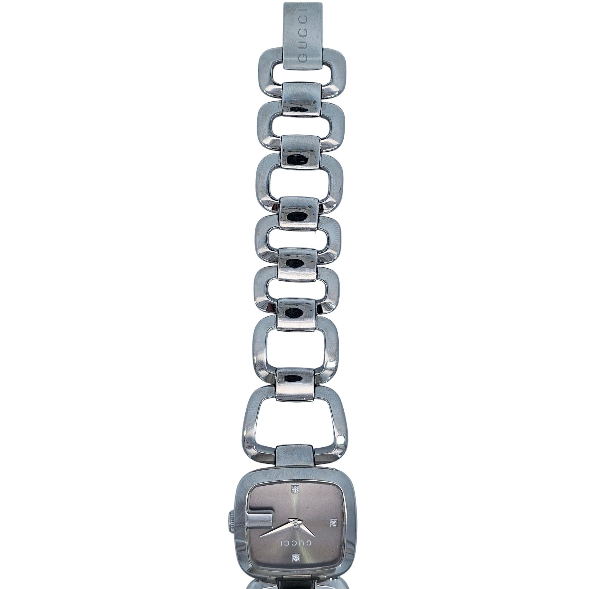 Gucci G-Gucci Collection Stainless Steel Watch YA125503 / 125.5 features a sleek stainless steel design with a distinctive dial accented by diamond markers. This luxury quartz watch combines elegant craftsmanship with durable materials, making it a stylish and reliable accessory for any occasion.