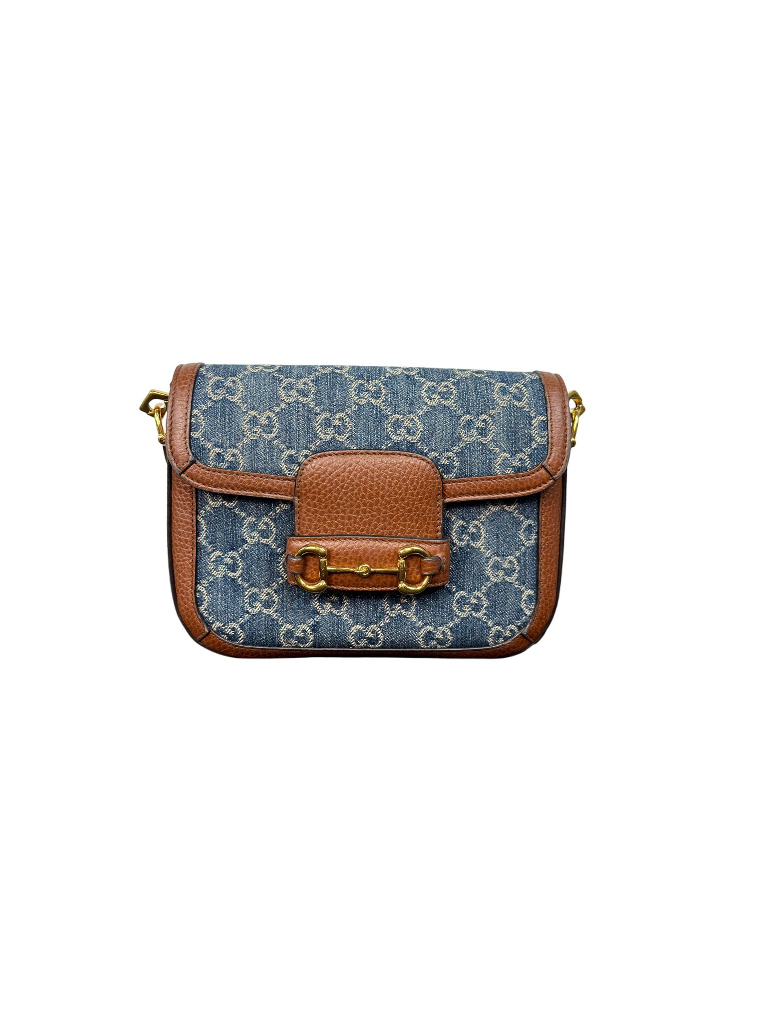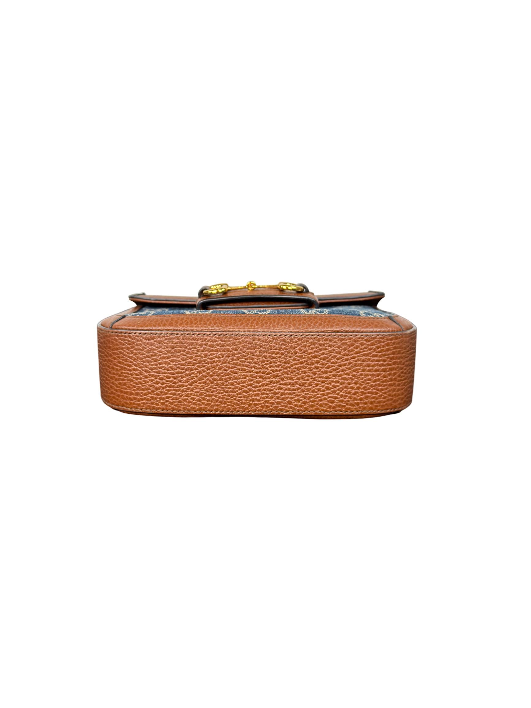 Experience luxury with the Gucci Horsebit 1955 Mini Bag, crafted from denim featuring the iconic GG monogram and accented with rich brown leather trim and gold-tone horsebit hardware. This elegant and versatile shoulder bag offers both timeless style and practicality—perfect for elevating everyday outfits or making a chic statement on special occasions.