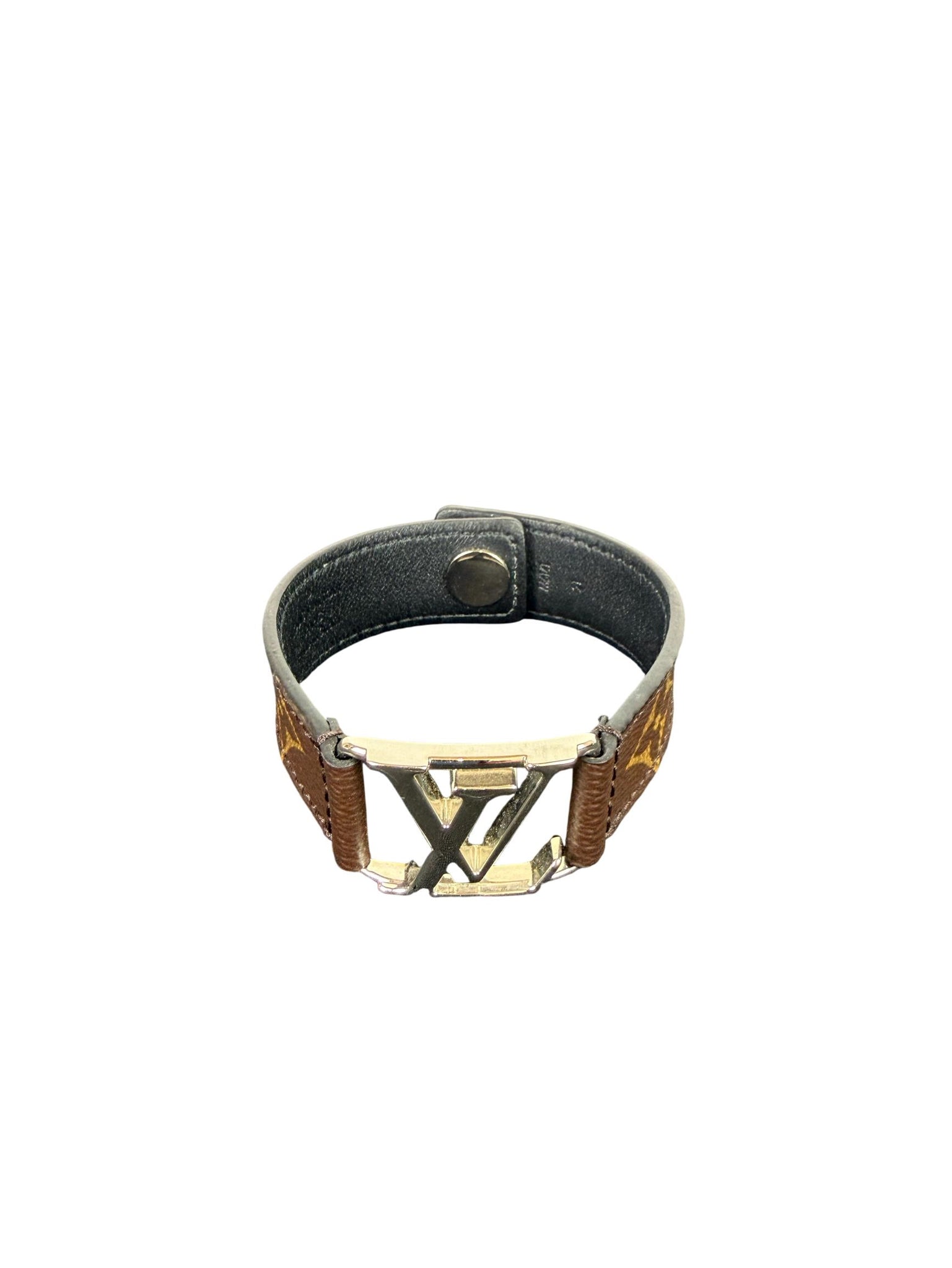 Louis Vuitton Slim Monogram Brown Leather Bracelet with Gold LV Buckle is a stylish men's accessory crafted from high-quality brown leather featuring the iconic LV monogram and a polished gold buckle. This reversible bracelet combines luxury and versatility, making it perfect for fashion-conscious individuals seeking a sophisticated statement piece.