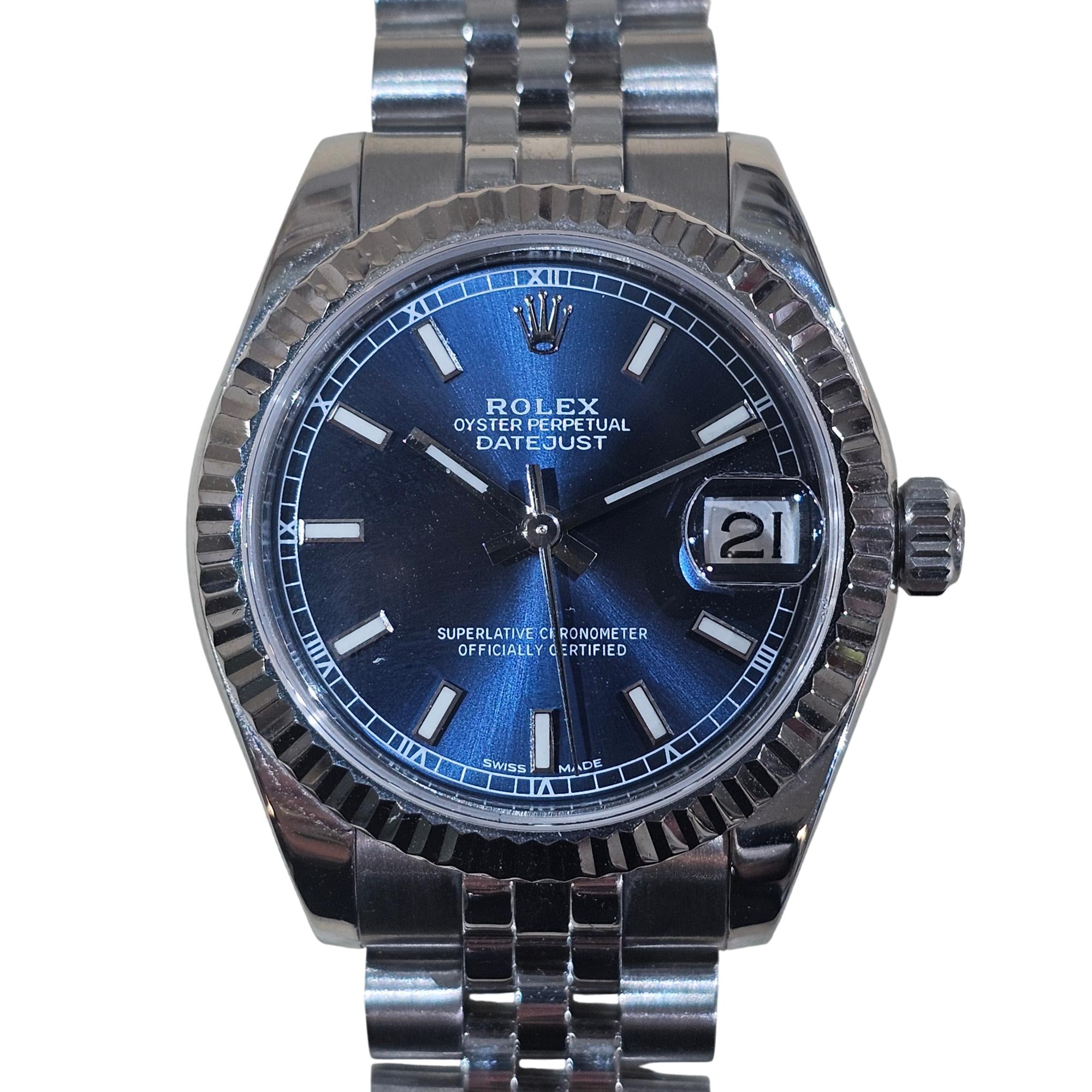 Rolex Datejust 31mm Stainless Steel & White Gold Watch Model 178274 (2020) features a sleek 31mm case crafted from durable stainless steel and elegant white gold. This model, released in 2020, combines classic Rolex design with a sophisticated analog display and Datejust functionality, making it a timeless luxury accessory. Perfect for collectors or daily wear, it comes with an international guarantee and authentic Rolex craftsmanship.